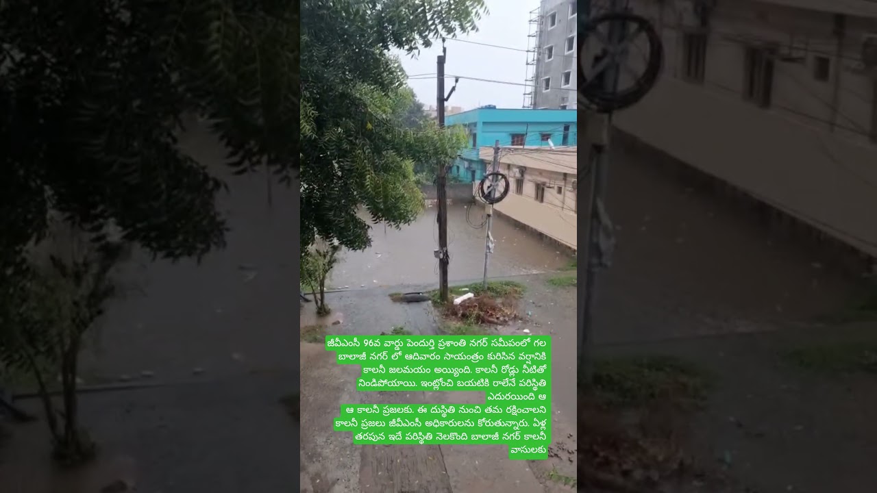 GVMC 96వ వార్డు పెందుర్తి ప్రశాంతి నగర్ సమీపంలో బాలాజీ నగర్ లో ఆదివారం సాయంత్రం కురిసిన వర్షానికి