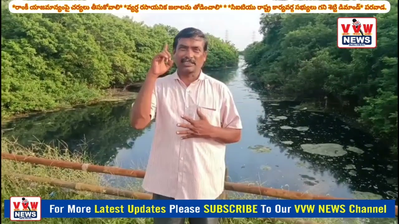 ప్రచురణార్థం. *రాంకీ యాజమాన్యంపై చర్యలు తీసుకోవాలి* *వ్యర్థ రసాయనిక జలాలను తోడించాలి* * *సిఐటియు రాష్ట్ర కార్యవర్గ సభ్యులు గని శెట్టి డిమాండ్* పరవాడ. మండల కేంద్రమైన పరవాడ బర్నికం గ్రామాల మధ్య మొల్లోడు గడ్డలు అక్రమంగా బరితెగించిన రాంకీ యాజమాన్యం వ్యర్థ రసాన్నిక జలాలను విడుదల చేయడం వలన భూగర్భ జలాలు నాశనం అవుతున్నాయని వ్యవసాయం పడడం లేదని వెంటనే రాంకీ యాజమాన్యంపై చర్యలు తీసుకోవాలని సిఐటియు రాష్ట్ర కార్యవర్గ సభ్యులు గని శెట్టి. సత్యనారాయణ డిమాండ్ చేశారు. ఆదివారం ఆయన మొల్లోడు గడ్డ ప్రాంతాన్ని పరిశీలించారు. ఈ సందర్భంగా ఆయన మాట్లాడుతూ ఈ మార్గం గుండా ప్రయాణించే ప్రయాణికులు సైతం ముక్కు మూసుకొని ప్రయాణించవలసిన దుస్థితి ఏర్పడిందని ఆవేదన వ్యక్తం చేశారు. గతంలో ఫిర్యాదు చేసినప్పుడు పిసిబి అధికారులు తూతు మంత్రంగా రాంకీ యాజమాన్యానికి నోటీస్ ఇచ్చి చేతులు దులుపుకున్నారన్నారు. రాష్ట్ర పొల్యూషన్ కంట్రోల్ బోర్డ్ చైర్మన్ కృష్ణయ్య ఈ ప్రాంతాన్ని పరిశీలించారని తీసుకున్న చర్యలు ఏమిటో అర్థం కాలేదని అన్నారు. రాష్ట్ర స్థాయి అధికారులు రాంకీ యాజమాన్యానికి అడుగులకు మడుగులు ఉన్నారని ఏ విధమైన చర్యలు తీసుకోకపోవడం వల్లనే కూటమి నేతలు రాంకీ యాజమాన్యానికి అండగా నిలవడం వల్లనే ఈ రకంగా వాయు, జల కాలుష్యానికి రాంకీ యాజమాన్యం కారణమవుతుందన్నారు. ఇప్పటికైనా ప్రభుత్వం స్పందించి చర్యలు చేపట్టాలని డిమాండ్ చేశారు. లేని పక్షంలో పెద్ద ఎత్తున పోరాడుతామని గని శెట్టి హెచ్చరించారు