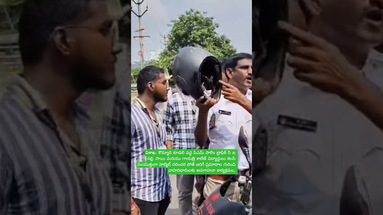 విశాఖ కొమ్మాది కూడలి వద్ద పిఎమ్ పాలెం ట్రాఫిక్ సిఐ నల్లి సాయి మరియు గాయత్రి కాలేజ్ విద్యార్దులు కలసి