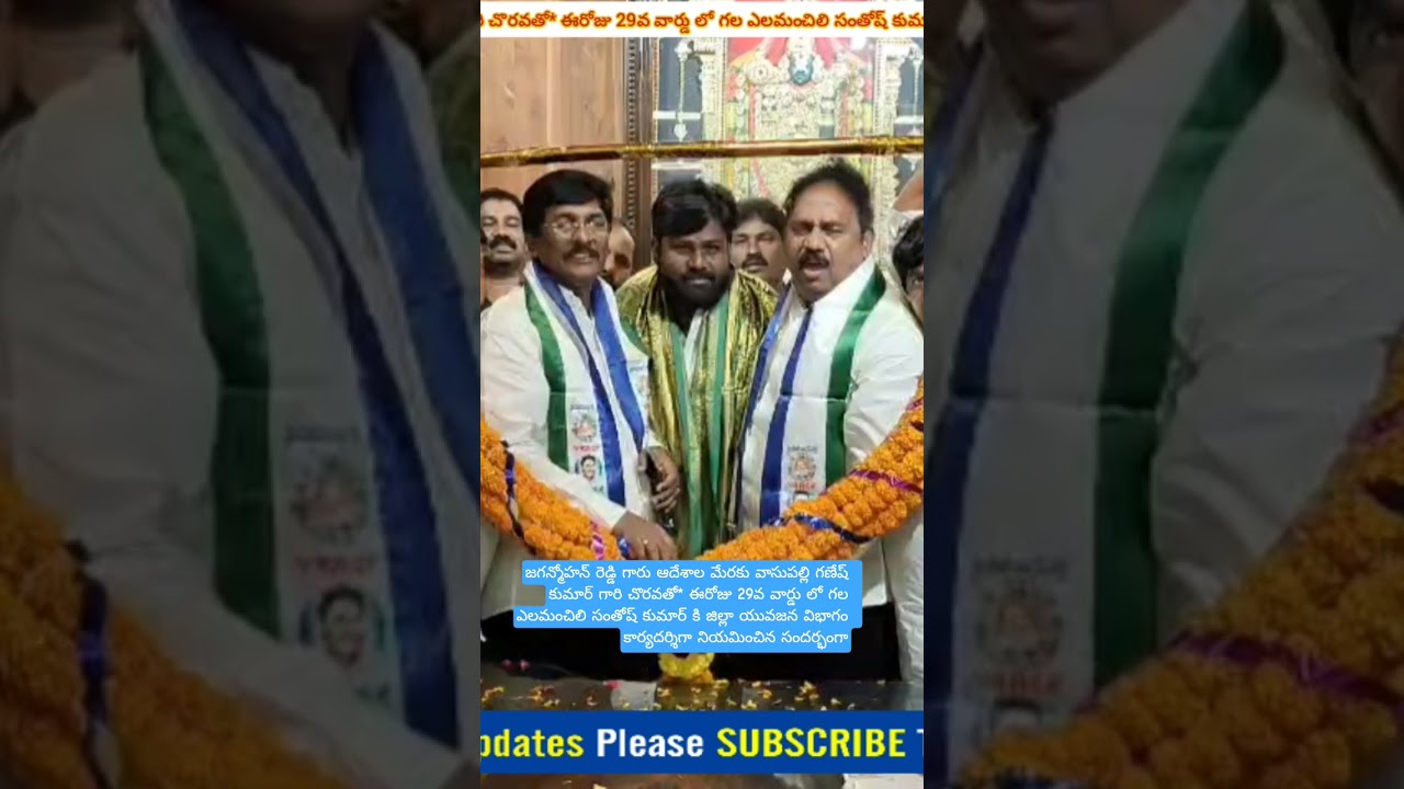 *జగన్మోహన్ రెడ్డి గారు ఆదేశాల మేరకు వాసుపల్లి గణేష్ కుమార్ గారి చొరవతో* ఈరోజు 29వ వార్డు లో గల ఎలమంచిలి సంతోష్ కుమార్ కి జిల్లా యువజన విభాగం కార్యదర్శిగా నియమించిన సందర్భంగా *మాజీ శాసన సభ్యులు సభ్యులు వాసుపల్లి గణేష్ కుమార్ గారిని, రాష్ట్రు క్రిస్టియన్ మైనార్టీ విభాగం అధ్యక్షులు శ్రీ జాన్ వెస్లీ* గారిని మర్యాదపూర్వకంగా కలిసి సాలువ కప్పి స్వీట్ అందించిన భారీ గజమాలతో. సన్మానించిన. ఎలమంచిలి సంతోష్. కుమార్ … ఎలమంచిలి సంతోష్ కుమార్ మాట్లాడుతూ.. నాకు ఈ పదవికి సహకరించిన .. వార్డ్ ప్రెసిడెంట్ పీతల వాసుకు, రాష్ట్ర యువజన విభాగం సెక్రటరీ కనకల ఈశ్వర్ కి కృతజ్ఞతలు తెలిపిన సంతోష్