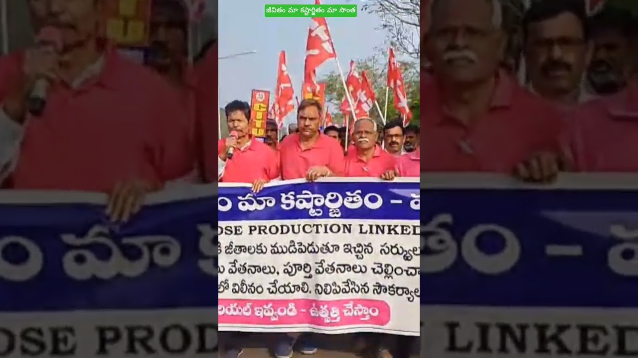 విశాఖ స్టీల్ యాజమాన్యం కార్మికుల హక్కుగా ఉన్న జీతం కష్టార్జితం అని దీనిని తక్షణమే చెల్లించాలని స్టీల్ సిఐటియు గౌరవాధ్యక్షులు ఎం జగ్గు నాయుడు ప్రభుత్వ,యాజమాన్యాన్ని డిమాండ్ చేశారు. నేడు స్టీల్ సిఐటియు ఆధ్వర్యంలో ఉత్పత్తి ఆధారంగా జీతాలు చెల్లించాలన్న సర్కులర్ తక్షణం రద్దు చేయాలని, హెచ్ఆర్ఏ చెల్లించాలని, కరెంటు చార్జీలు తగ్గించాలని, సెయిల్ లో విలీనం చేయాలని, సొంత గనులు కేటాయించాలని, సిఎండి పై సిబిఐ విచారణ చేయాలని, ఉత్పత్తికి అవసరమైన రా మెటీరియల్ సక్రమంగా అందించాలని తదితర డిమాండ్లతో స్టీల్ ప్రధాన పరిపాలన భవనం ఎదుట ధర్నా నిర్వహించారు.