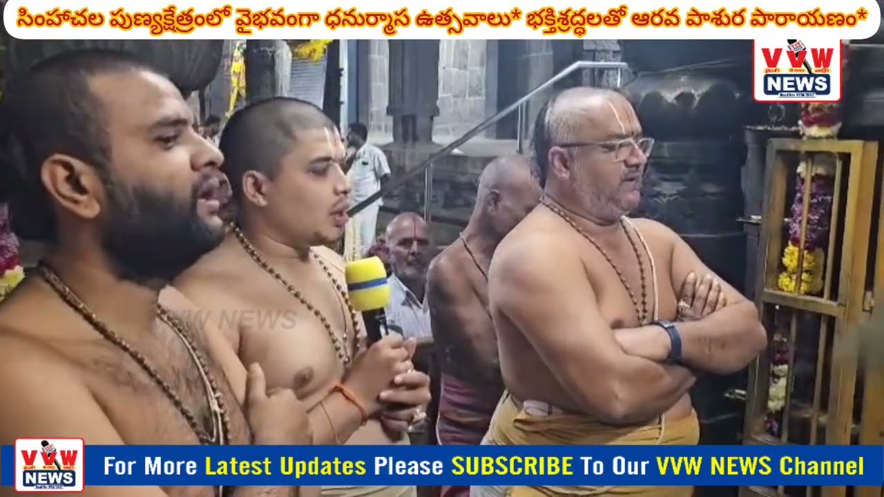 ప్రసిద్ధ పుణ్యక్షేత్రమైన శ్రీ శ్రీ వరాహలక్ష్మీ నరసింహస్వామి వారి దేవస్థానంలో ధనుర్మాస ఉత్సవాలు కన్నులపండువ గా కొనసాగుతున్నాయి ఆదివారం వేకువజామున జరిగిన ధనుర్మాస వ్రత మహోత్సవంలో భాగంగా గోదాదేవి రచించిన తిరు ప్పావైలోని ఆరవ పాశుర పారాయణాన్ని అత్యంత భక్తిశ్రద్ధలతో నిర్వహించారు