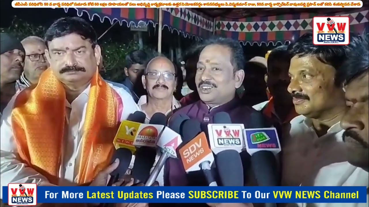 ప్రజలకు మౌలిక వసతులు కల్పనే ధ్యేయంగా కూటమి ప్రభుత్వం కృషి చేస్తుందని నగర మేయర్ పీలా శ్రీనివాసరావు పేర్కొన్నారు. జీవీఎంసీ పరిధిలోని 50 వ వార్డు పరిధిలో సుమారు కోటి 60 లక్షల రూపాయలతో పలు అభివృద్ధి కార్యక్రమాలకు ఉత్తర నియోజకవర్గం శాసనసభ్యులు పి.విష్ణుకుమార్ రాజు, 50వ వార్డు కార్పొరేటర్ వావులపల్లి ప్రసాద్ శంకుస్థాపన చేశారు. అనంతరం వారంతా మాట్లాడారు..