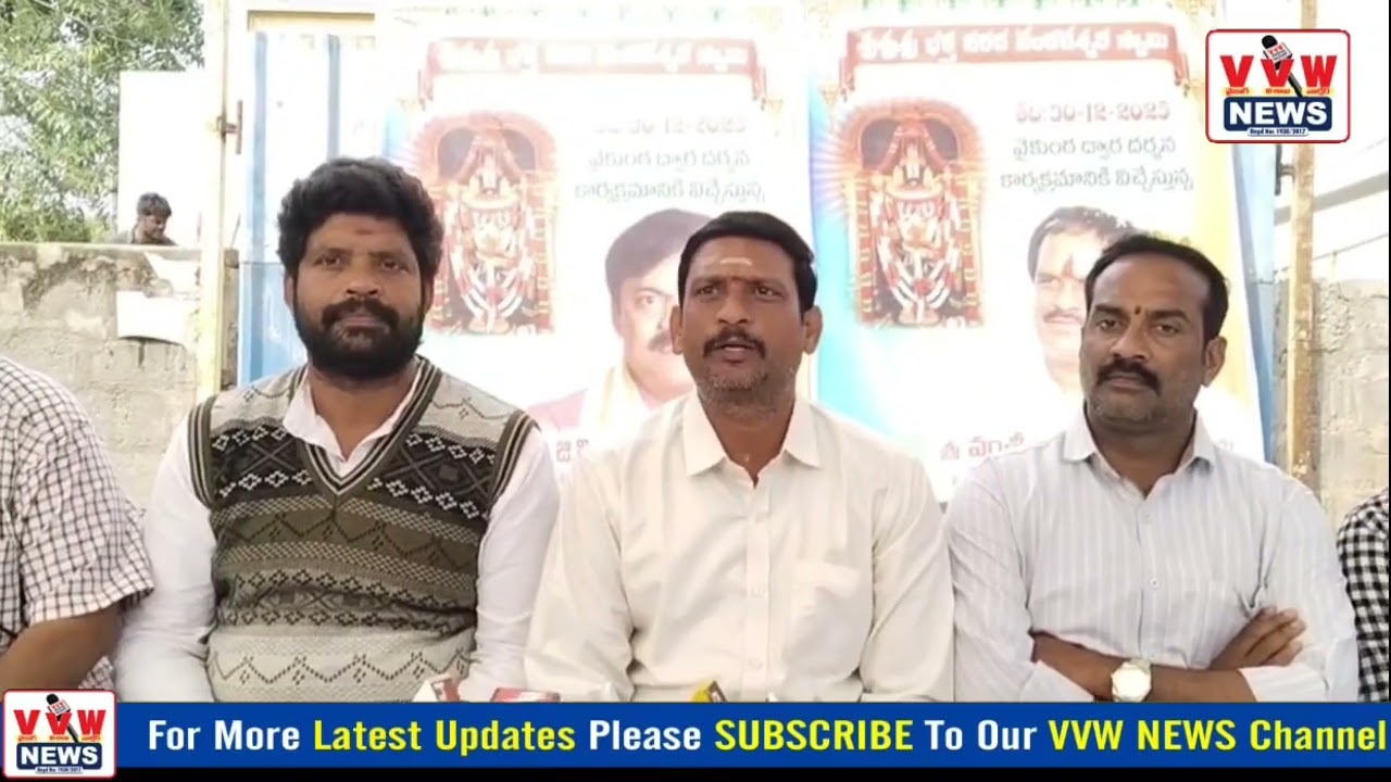 తూర్పు నియోజకవర్గం ఆరిలోవ 12వ వార్డులో శ్రీకాంత్ నగర్ రోడ్ నెంబర్ వన్ లో శ్రీ శ్రీ భక్త వరద వెంకటేశ్వర స్వామి వైకుంఠ ద్వార దర్శన కార్యక్రమం నిర్వహిస్తున్నామని కార్యక్రమం నిర్వహకులు కోటేశ్వరరావు గారు తెలిపారు.సోమవారం విలేకరుల సమావేశంలో మాట్లాడుతూ శ్రీ పరమానంద మాధవం సేవా సంఘం ఆధ్వర్యంలో ప్రజలకు శ్రీ వెంకటేశ్వర స్వామి వారికి ఉదయం సుప్రభాత సేవ మొదలుకొని పవళింపు సేవ వరకు నిర్వహింపబడే ఉదయాస్తమాన సేవలతో వైకుంఠ ద్వార దర్శనం ఇవ్వబోతున్నారని తెలియజేశారు.ఈ కార్యక్రమానికి ముఖ్య అతిథులు మాజీ రాజ్యసభ సభ్యులు జీవీఎల్ నరసింహరావు, తూర్పు నియోజకవర్గ శాసనసభ్యులు వెలగపూడి రామకృష్ణ బాబు, మరియు దక్షిణ నియోజకవర్గం శాసనసభ్యులు వంశీకృష్ణ, ఉత్తర నియోజకవర్గం విష్ణుకుమార్ రాజు గారు మరియు రాష్ట్ర బిజెపి అధ్యక్షులు మాధవ్ గారు, బిజెపి జిల్లా అధ్యక్షులు శ్రీ ఎం ఎం ఎన్ పరశురామరాజు గారుకార్యక్రమానికి వస్తున్నారని తెలియజేశారు.