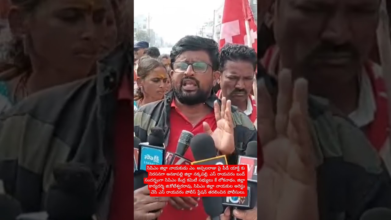 సిపిఎం జిల్లా నాయకుడు ఎం. అప్పలరాజు పై పీడీ యాక్ట్ కు నిరసనగా అనకాపల్లి జిల్లా నక్కపల్లి, ఎస్ రాయవరం బంద్ సందర్భంగా సిపిఎం కేంద్ర కమిటీ సభ్యులు కే లోకనాథం, జిల్లా కార్యదర్శి జి.కోటేశ్వరరావు, సిపిఎం జిల్లా నాయకుల అరెస్టు చేసి ఎస్ రాయవరం పోలీస్ స్టేషన్ తరలించిన పోలీసులు.