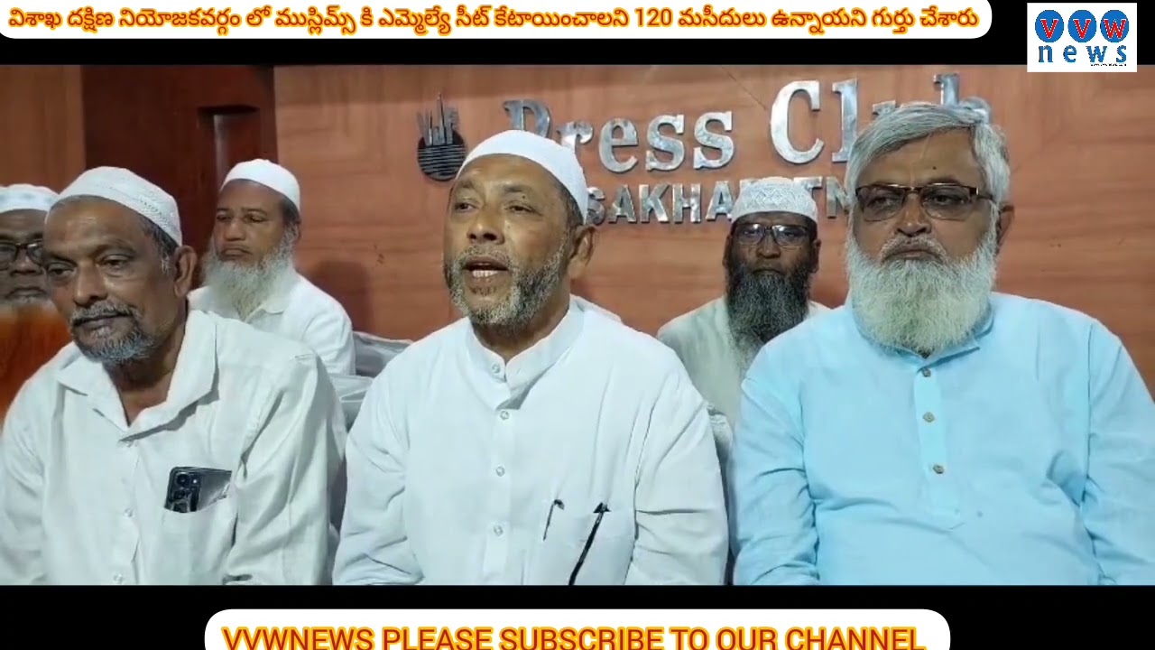 విశాఖపట్నం లో ముస్లింలకు ఎమ్మెల్యే టికెట్ కేటాయించాలని మక్కా మసీదు అధ్యక్షుడు షేక్ మున్నీర్ కోరారు. నగరంలో గల పది మసీదులకు చెందిన ముస్లిం వర్గానికి చెందిన నేతలు డాబా గార్డెన్స్ వి జే ఎఫ్ ప్రెస్ క్లబ్, లో శనివారం జరిగిన మీడియా సమావేశంలో పాల్గొన్నారు. షేక్ మున్నీర్ మాట్లాడుతూ, ఉత్తరాంధ్ర లో 34 అసెంబ్లీ స్థానాలు వున్నాయి. 1994 లో ఎస్.ఏ. రెహమాన్ ను గెలిపించాము అన్నారు. విశాఖలో 1972 లో కూడా ముస్లిం నేత గెలిచారు అని గుర్తు చేశారు. జిల్లా జనాభాలో