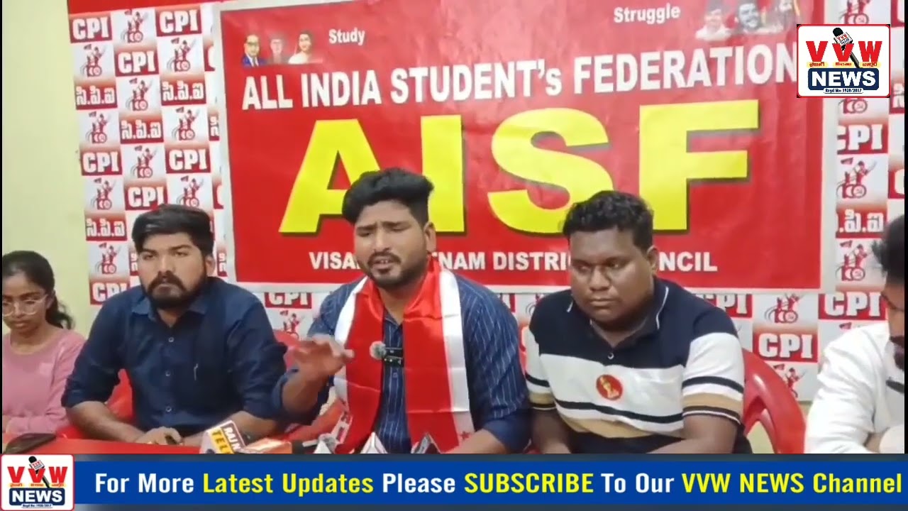 అఖిల భారత విద్యార్థి సమాఖ్య ఏఐఎస్ఎఫ్ విశాఖపట్నం జిల్లా సమితి ఆధ్వర్యంలో స్థానిక అల్లిపురంలో నీలం రాజశేఖర్ రెడ్డి భవన్ నందు శనివారం ఉదయం 10 గంటలకు మీడియా సమావేశం ఏర్పాటు చేయడం జరిగింది